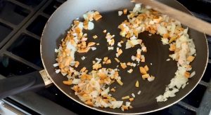 - Heat a frying pan over high heat, add 1 tbsp of oil. Stir-fry onion until it turns translucent.