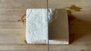 - Squeeze as much excess water from the tofu block as possible.